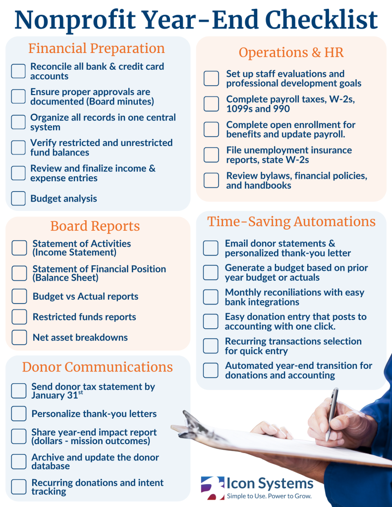 Save end-of-year stress and headaches. Download our year-end checklist– essential for all nonprofit organizations.